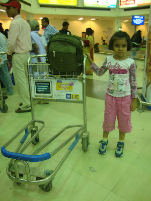 कोलकाता एयरपोर्ट पर लगेज के लिए ट्राली के साथ अक्षिता (पाखी)